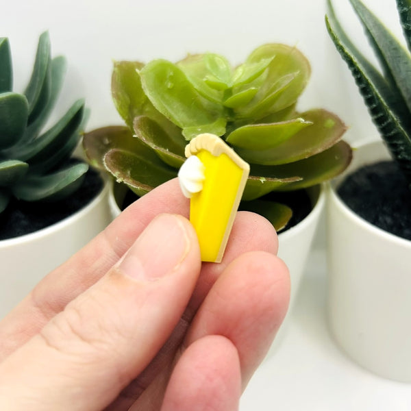 These adorable lemon meringue pie charms are topped with a dollop of whipped cream. At the top of the crust you'll find a hidden hole for a jump ring for each attachment to earrings, keychains, zipper pulls and more - or use them as a cupcake topper or table decor! Other flavors/colors available!