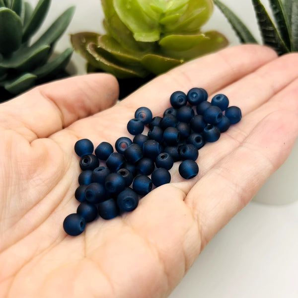 6mm Dark Blue Frosted Glass Beads