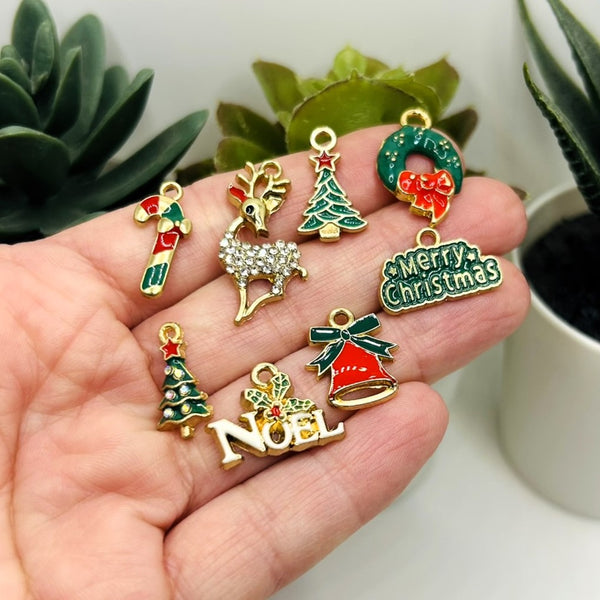Festive enamel and rhinestone charms perfect for holiday crafts and jewelry making. This 40-piece assortment features 20 classic Christmas designs including snowflakes, bells, candy canes, and ornaments in vibrant colors.