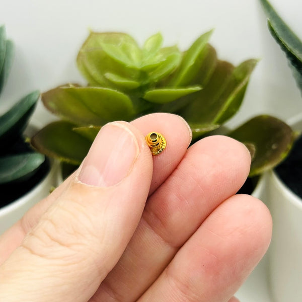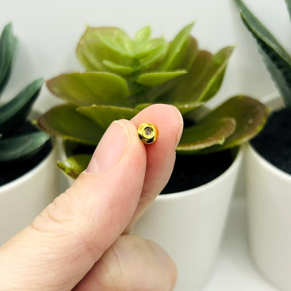 These light gold earring backs, measuring 6x5mm, offer a secure and durable solution for keeping your earrings firmly in place.