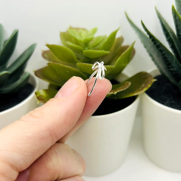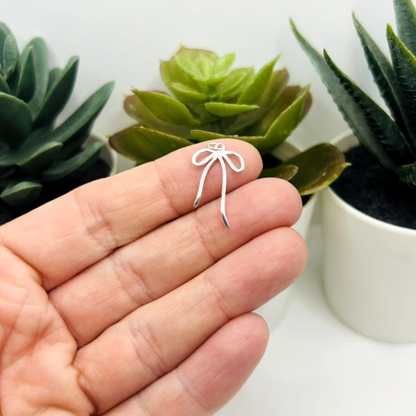 This sterling silver bow charm measures 20x13mm, offering a delicate and refined accessory for jewelry projects.