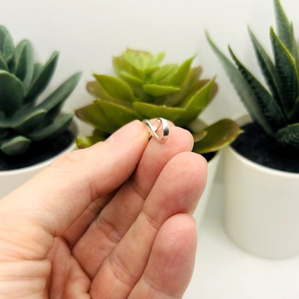 This sterling silver infinity charm measures 24x8mm, combining elegant design with durable craftsmanship. Its sleek, polished surface highlights the timeless infinity symbol, representing endless possibilities and continuity.