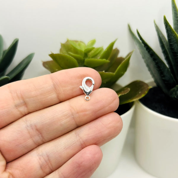 The sterling silver plated lobster clasps measuring 7x12mm provide a secure and reliable closure for your jewelry pieces. Crafted from high-quality brass and sterling silver plated, these clasps combine durability with a polished finish, ensuring both strength and elegance.